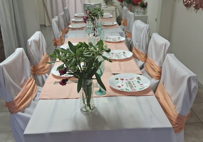 Manteles, caminos, servilletas, fundas de silla, cubremanteles que aportan calidez y estilo a tu celebración, ideales para eventos familiares y corporativos.